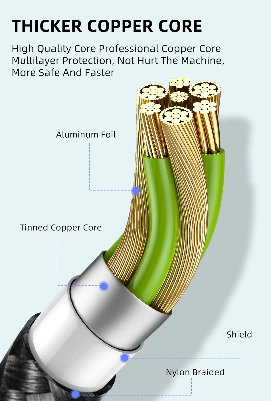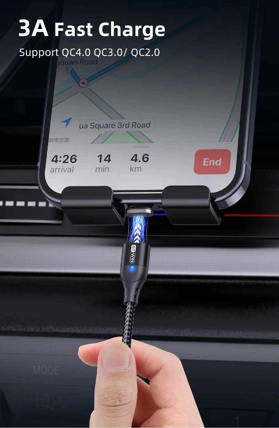 Магнитный USB-кабель USLION 3A для быстрой зарядки iPhone, Samsung,...