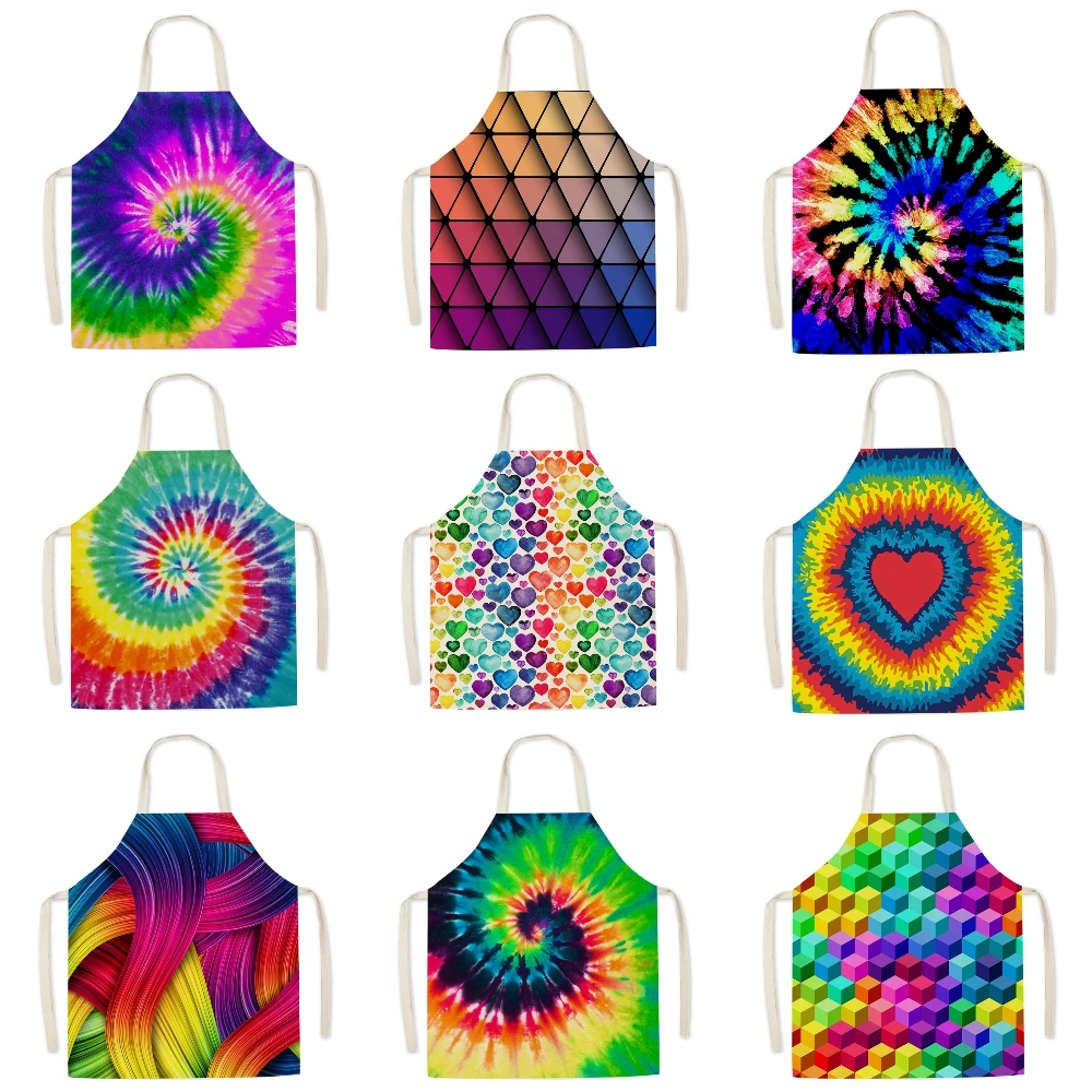 Женский Кухонный Фартук с цветным геометрическим узором, Мужской фартук без рукавов из хлопка и льна, водонепроницаемый фартук для домашнего приготовления пищи