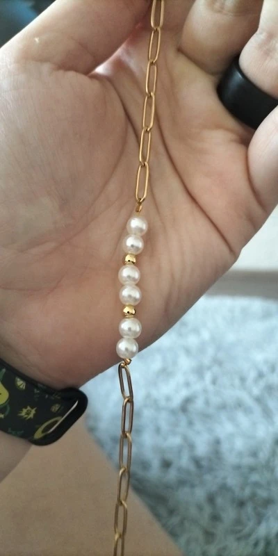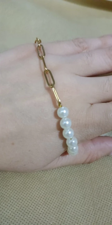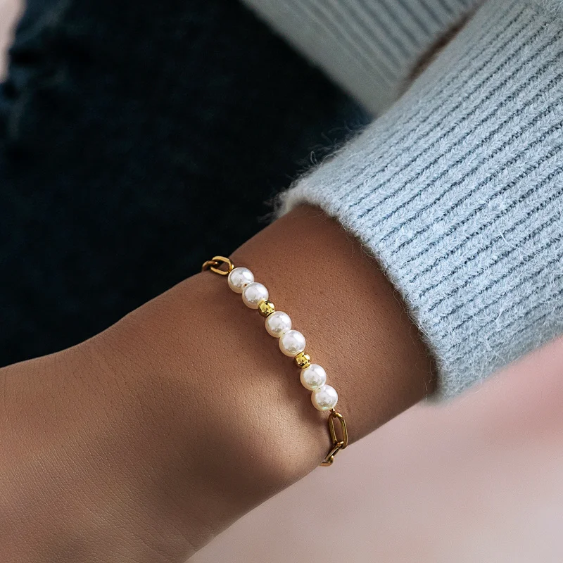 Женский браслет-цепочка из нержавеющей стали с искусственным жемчугом