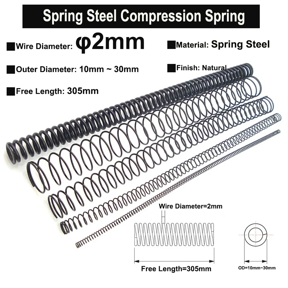 1 шт. диаметр проволоки Spring 2 мм пружина стали компрессионная пружина Свободная Длина 305 мм OD 10 мм ~ 30 мм ультра длинная пружина давления