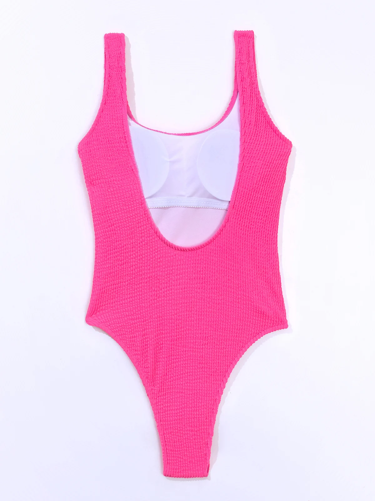 Неоновый розовый однотонный купальник 2020, женский сексуальный Мон...
