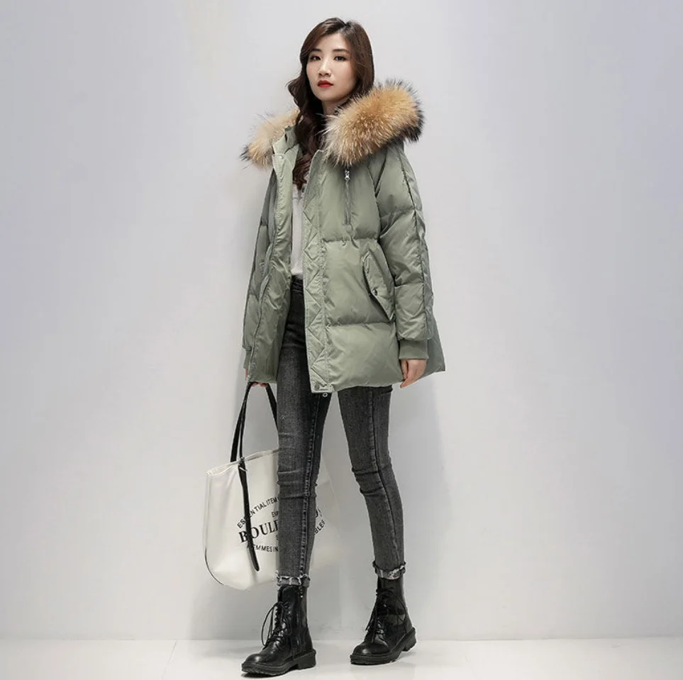 Luzuzi 2021 Новая зимняя Женская парка с меховым воротником куртки ...