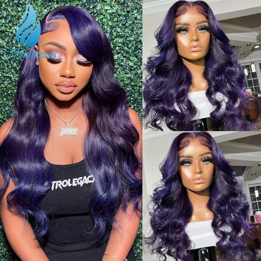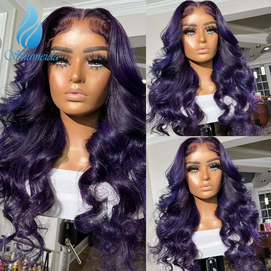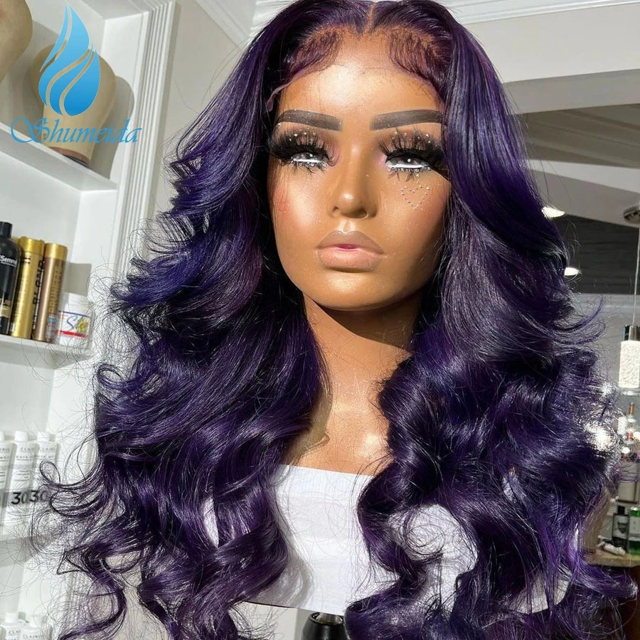 Парик Shumeida на сетке спереди 13*4, бразильские натуральные волосы без повреждения кутикулы, для женщин, предварительно выщипанные волосы с детскими волосами, фиолетовый цвет