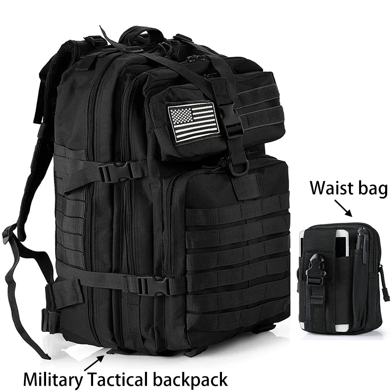 3. Упаковка: 1 * военный тактический рюкзак и 1 * поясная сумка. (другие предметы, такие как ручки или телефоны, не включены)
