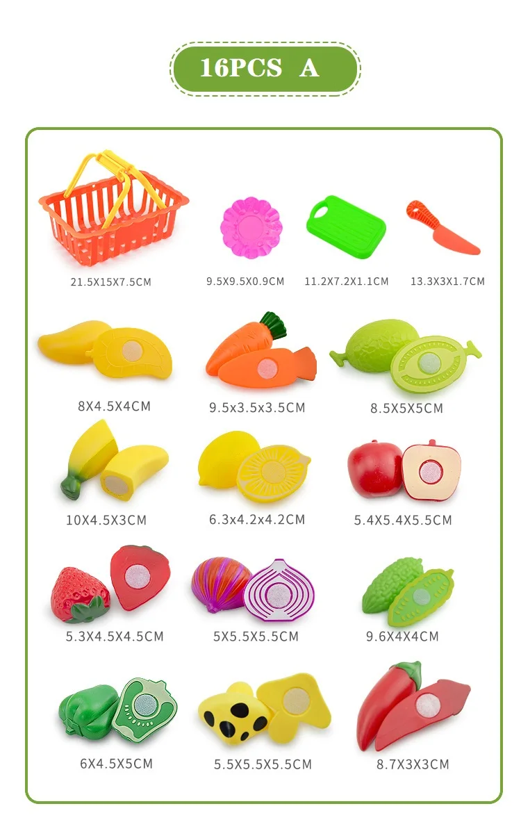 Поставляется с пластиковым ножом для детей, чтобы вырезать игрушки фруктов и овощей