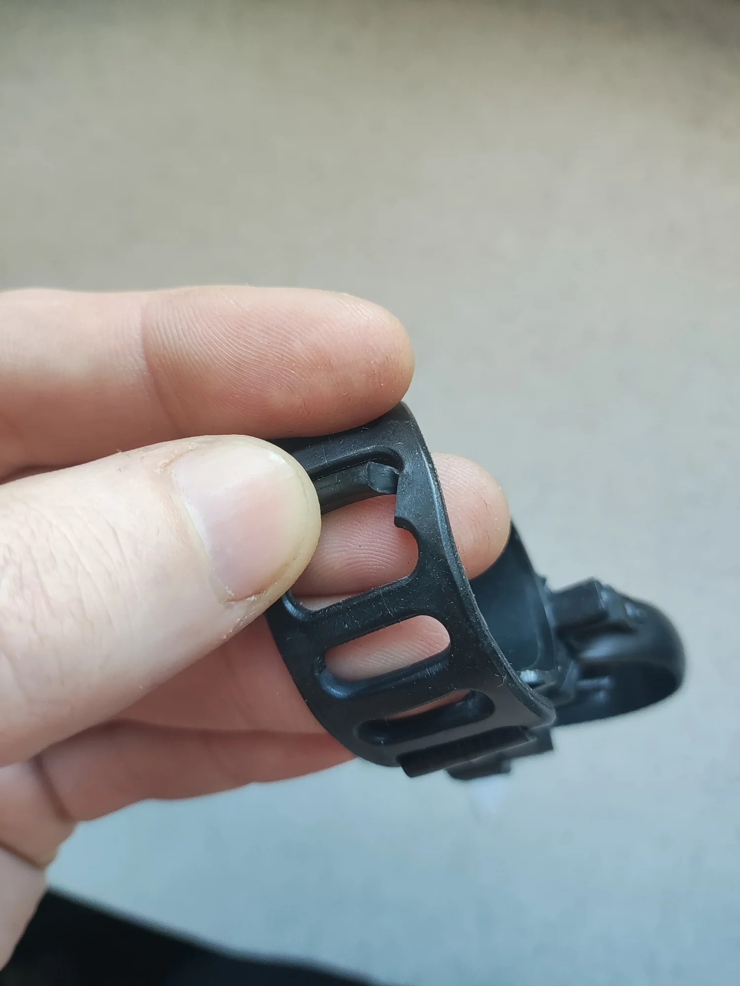 во-первых по качеству исполнения - это просто полная ерунда... везде облой пластик не обработанный Ну да ладно цена не особо. но потом я поставил фонарик и зажал его резиновой частью. в итоге после пары дней на полке без установки даже на велосипед и покатушек случилось это. Так можно и потерять дорогостоящий фонарик