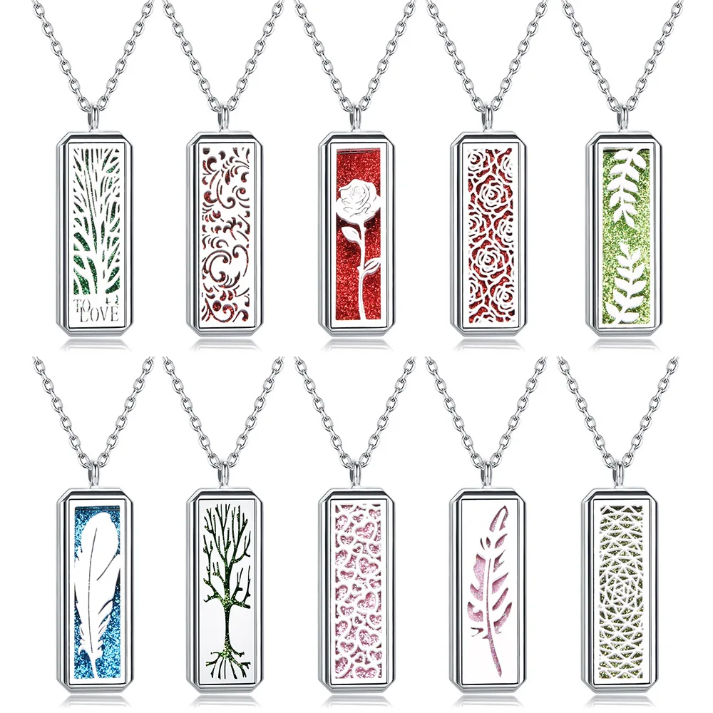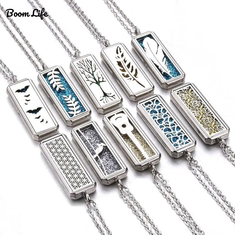 Ожерелье для ароматерапии, прямоугольное, из нержавеющей стали