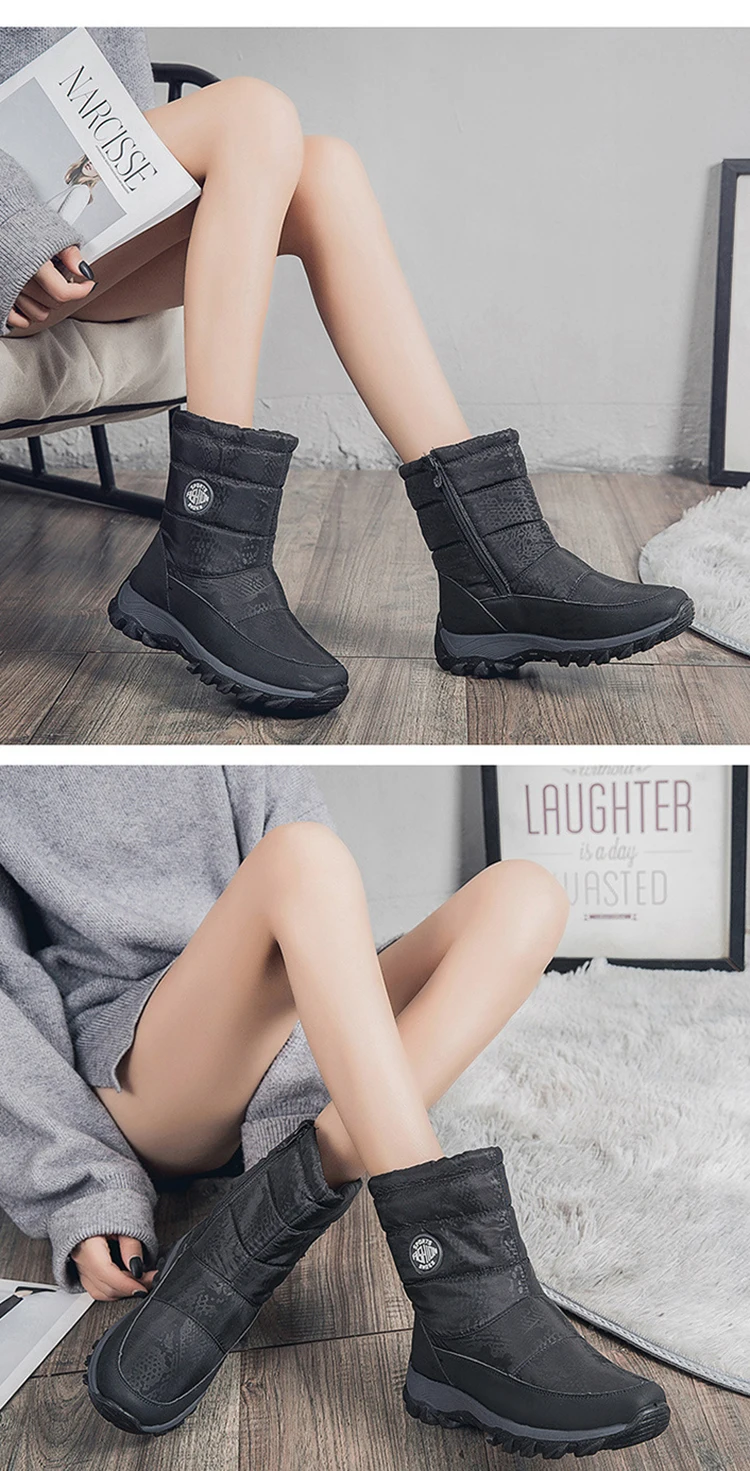 Женские зимние ботинки, модные ботинки, женская водонепроницаемая обувь для женщин, обувь на молнии, женские удобные меховые ботинки, женская зимняя обувь