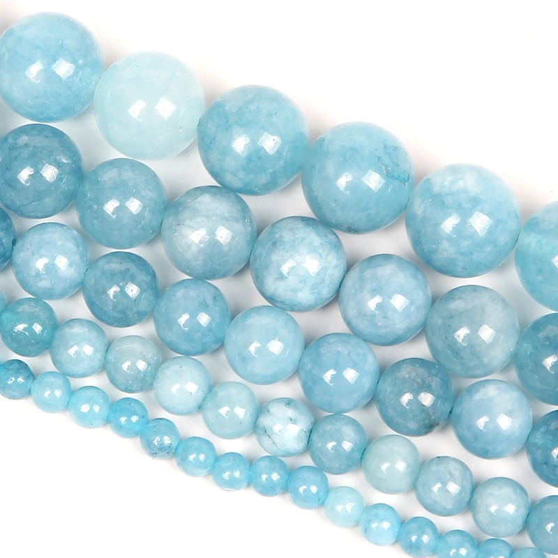 Натуральный камень Бусины аквамарины Халцедон Круглые бусины для юв...