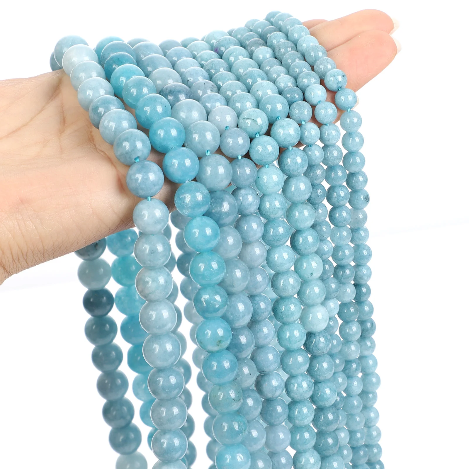 Аквамариновые бусины из натурального камня, круглые бусины-разделители россыпью для изготовления ювелирных изделий ручной работы, сделай сам, шарм, браслета, ожерелья, аксессуары