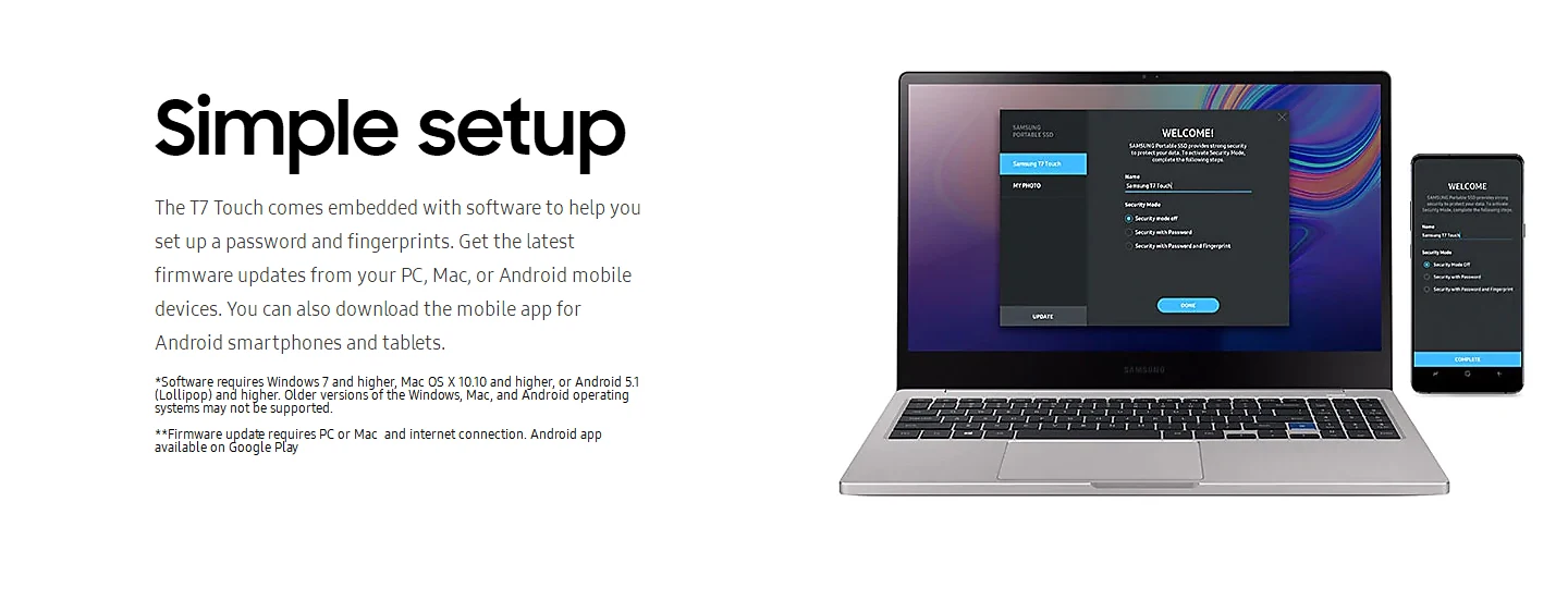 Портативный SSD-накопитель Samsung T7 с сенсорным интерфейсом, внеш...