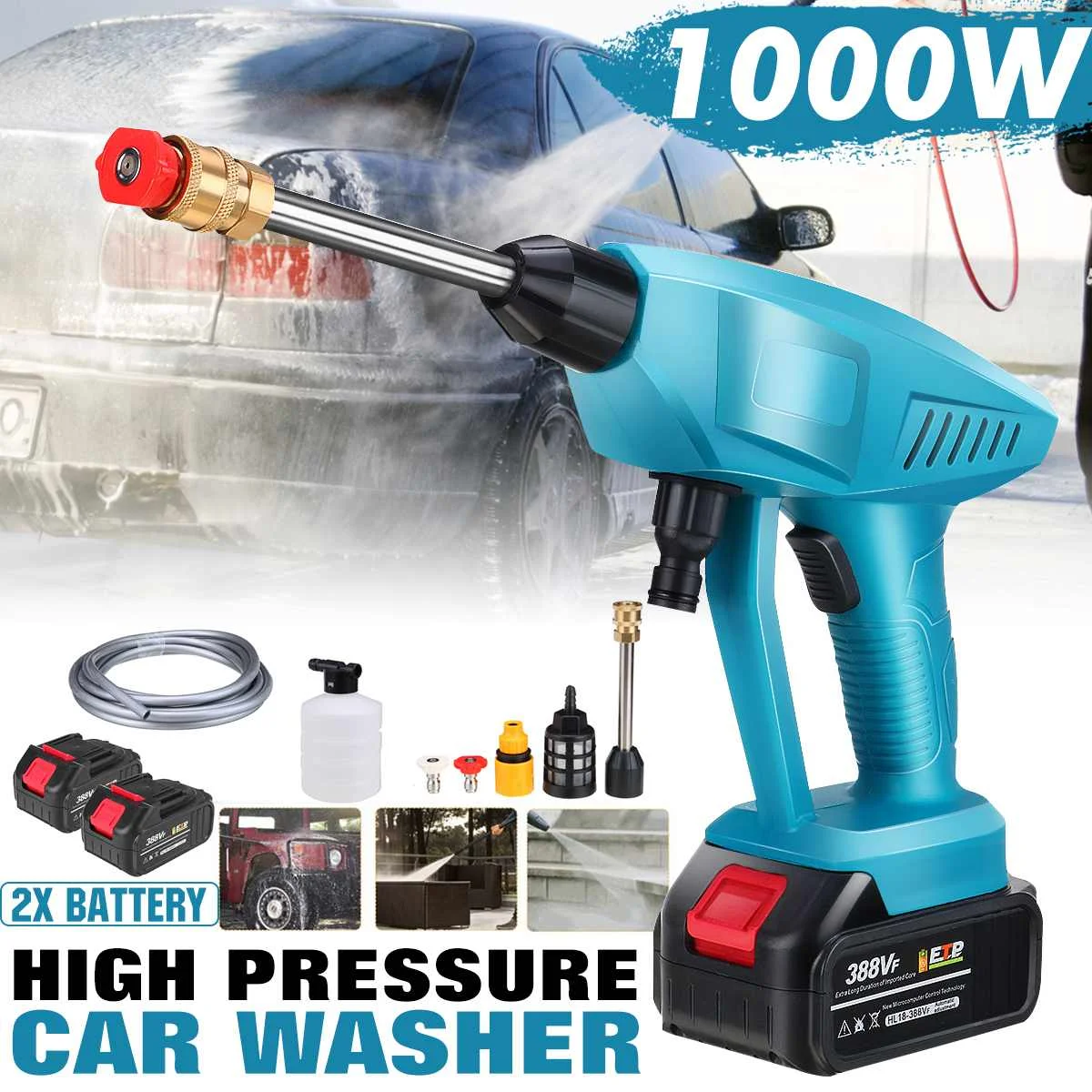 1000 Вт Автомойка высокого давления, водяной пистолет, портативная мойка высокого давления, беспроводная Автомойка с 2 батареями
