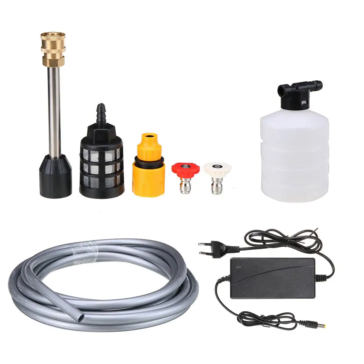 Спецификация:Состояние на 100% абсолютно новыйТип: автомойкаМатериал головки пистолета: медьМатериал ручки: инженерный Материал sНапряжение батареи: 24 ВДавление на выходе: 130-507PSIМощность: 1000 ВтПодача воды: 1,5-3,2 л/минСкорость двигателя: 20000р/мин