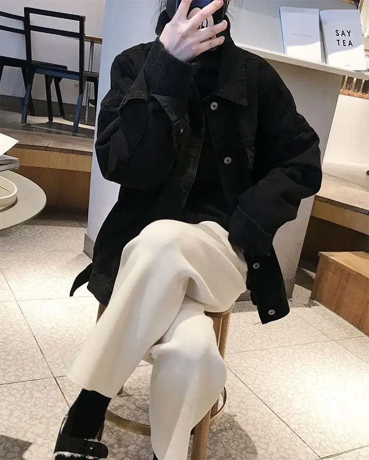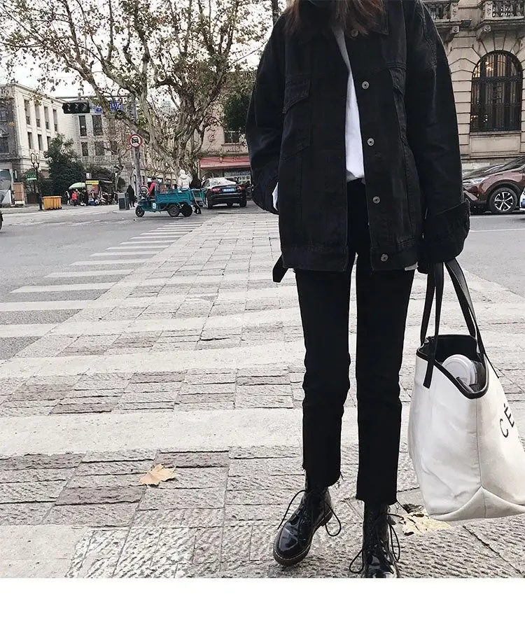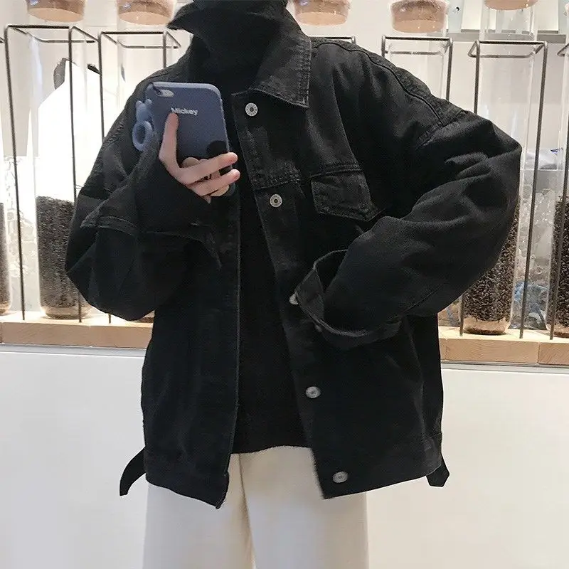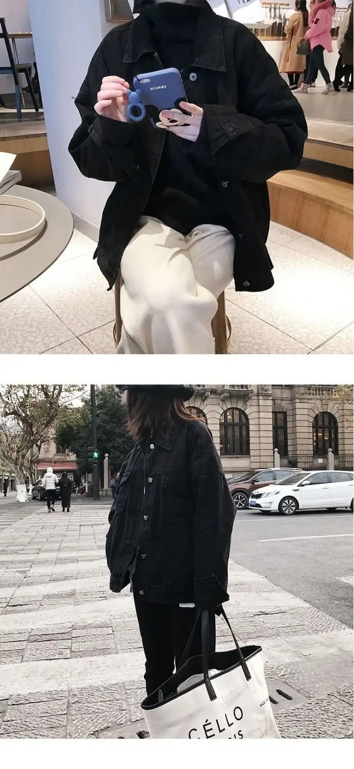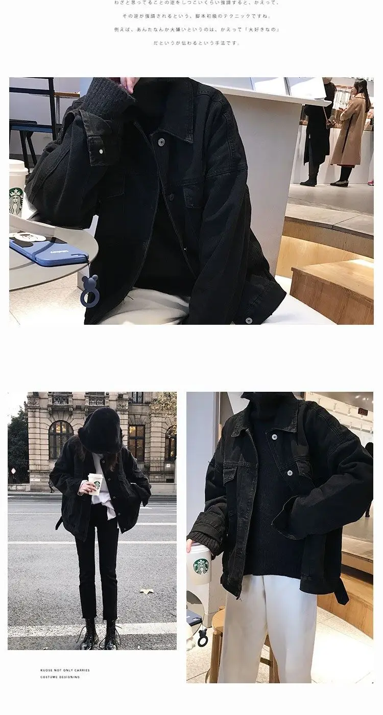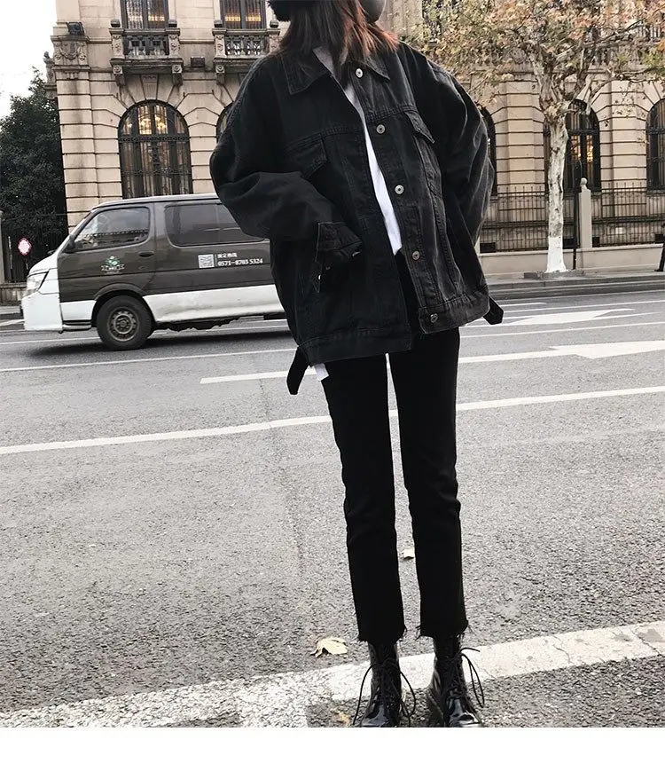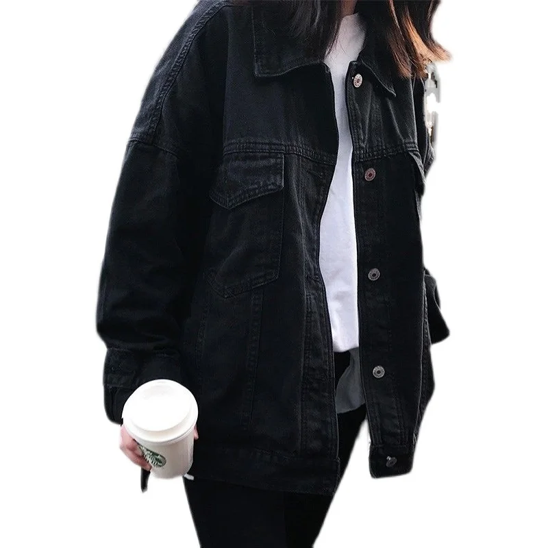 Женская джинсовая куртка, черная универсальная винтажная Повседневная куртка с длинным рукавом, трендовая уличная одежда, осень-зима 2021