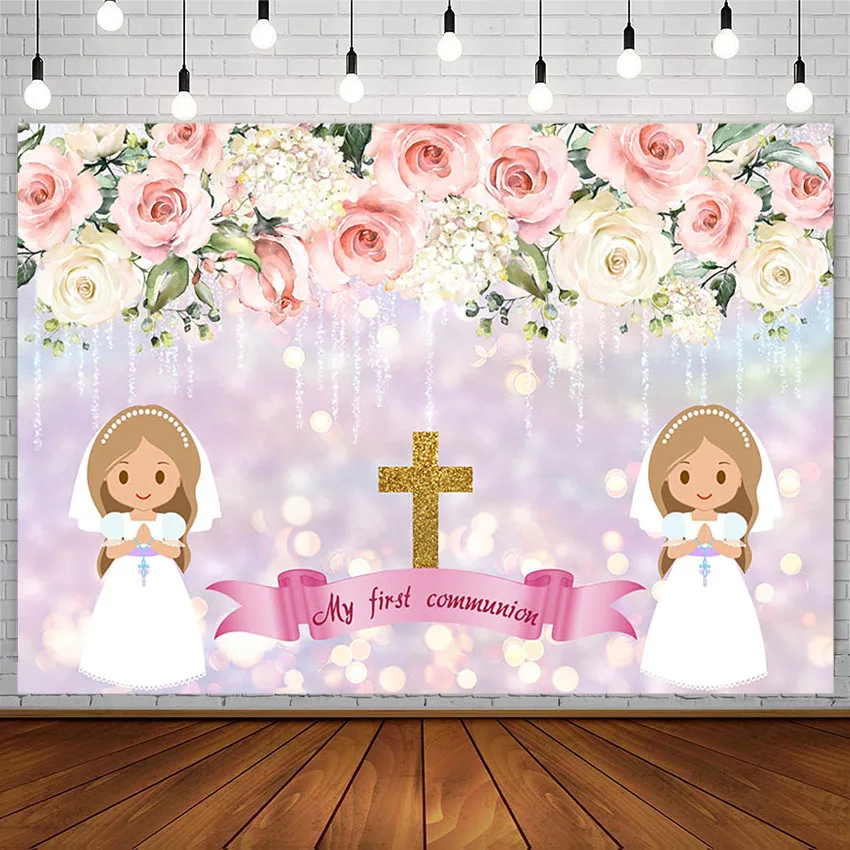 Avezano мой первый Причастие фотография Фон Розовый Блестящий девушка цветок золотой Фотография Студия фотозона