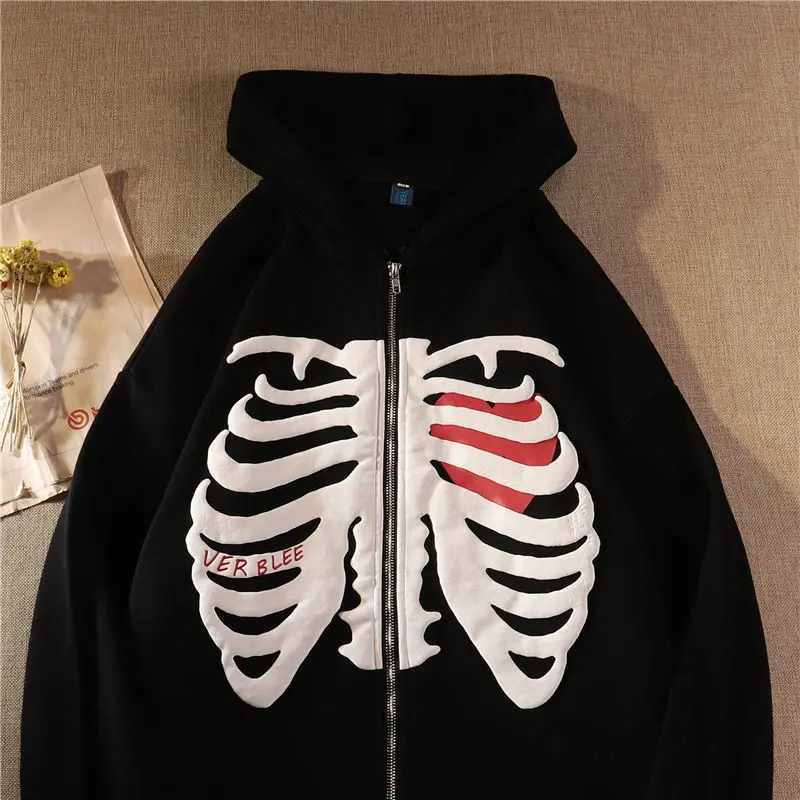 Американская Мода, лидер продаж, толстовка с капюшоном и принтом скелета, с длинным рукавом, на молнии, для мужчин и женщин, свободная уличная одежда, пуловер Y2K