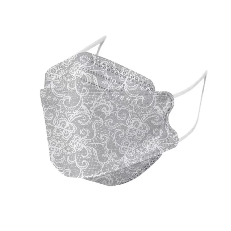Очень красиво, удобно и хорошо вписывается в лицо с металлической зажимом для носа Хорошо приспособлен к ушам без боли Женщины Быстрая доставка Видимо эквивалентно FFP2 в соответствии с стандартами Сложенный в 4 и положить в небольшую сумку для сумочки