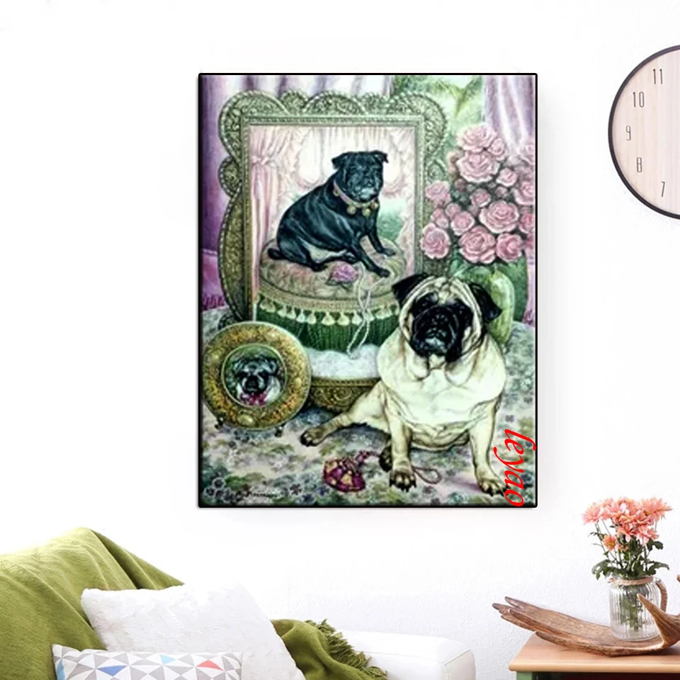 Полный 5D DIY Алмазная картина мопса в картине Алмазная Вышивка Милая мопса картина Стразы Мозаика из бисера Работа домашний декор