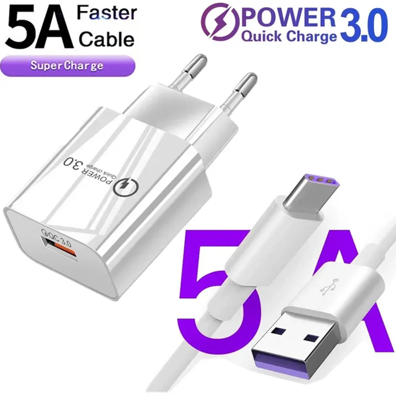 Быстрое зарядное устройство QC 3,0, USB-адаптер типа C, USB-кабель ...