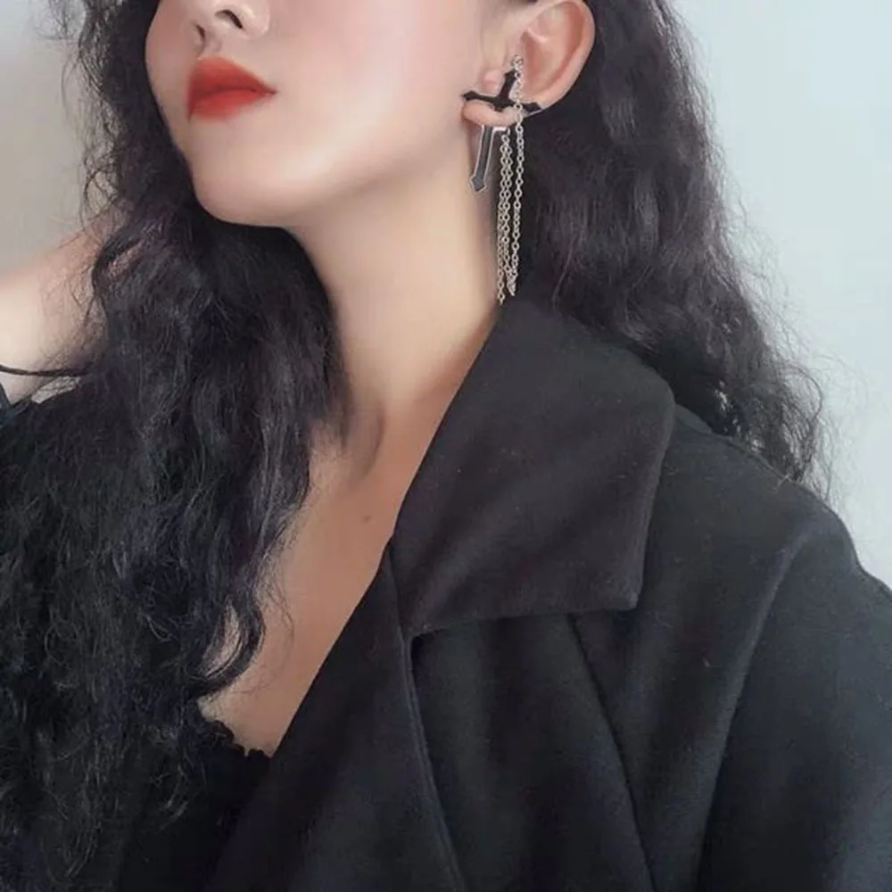 Название модели: черные серьги-капли с крестиком в стиле панк для подростков; Винтажные длинные серьги-бабочки в форме гордыни; Женские серьги; Подарок для девочек