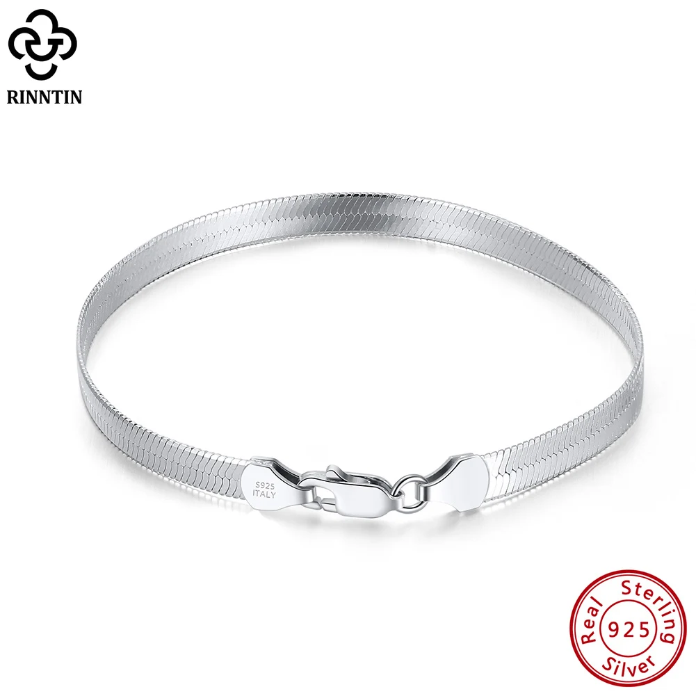 Rinntin, Стерлинговое Серебро 925 пробы, итальянский, 4,5 мм, ручной работы, гибкий плоский браслет в елочку для женщин и мужчин, модные серебряные ювелирные изделия SB107