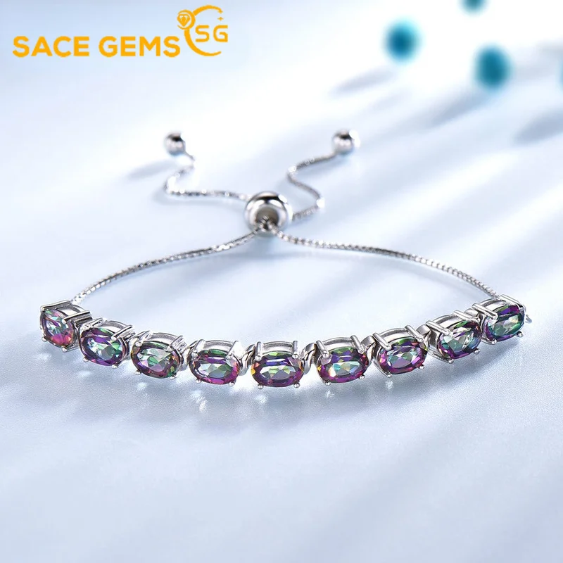 Женский браслет из серебра 100% пробы с голубым Мистик-топазом
