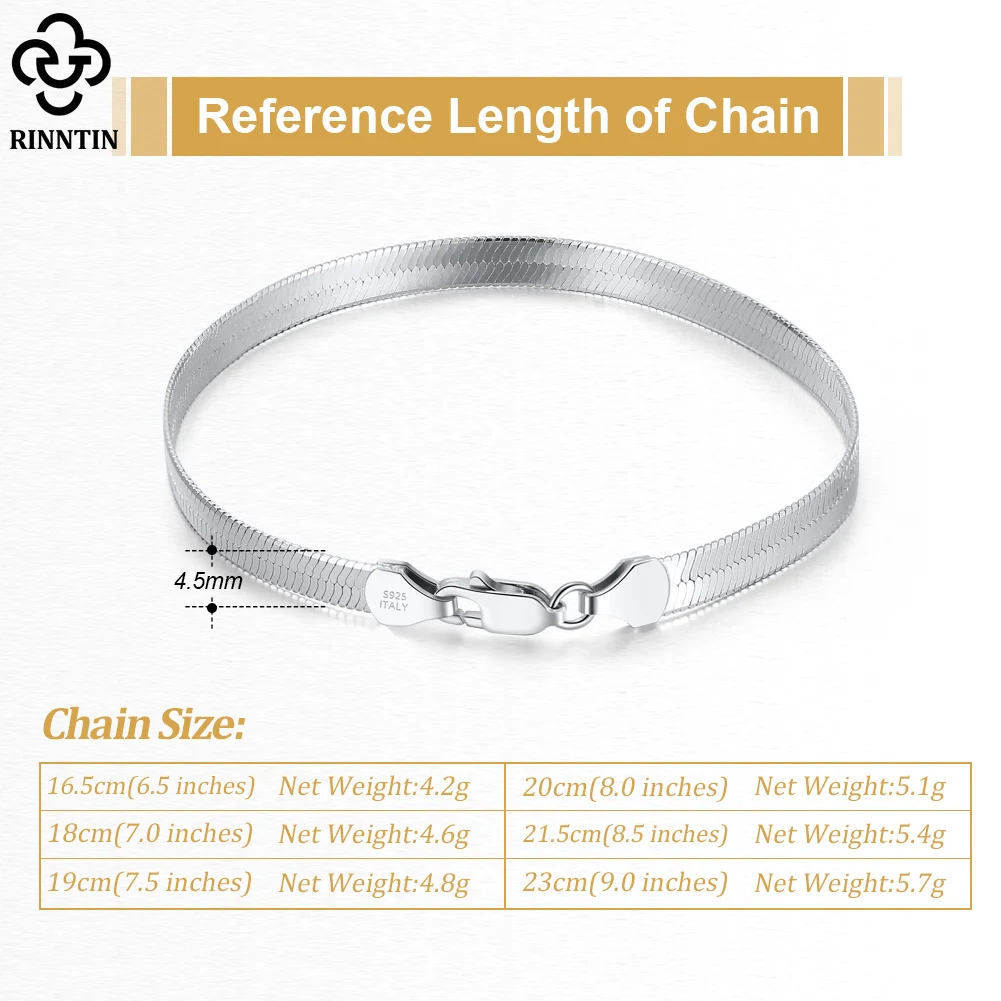 Rinntin 18K Позолоченные 925 стерлингового серебра серебристого цвета в итальянском стиле; Цвет: 4,5 мм Гибкий Плоский с узором «елочка» браслет-цепочка для женщин и мужчин ювелирные изделия SB107