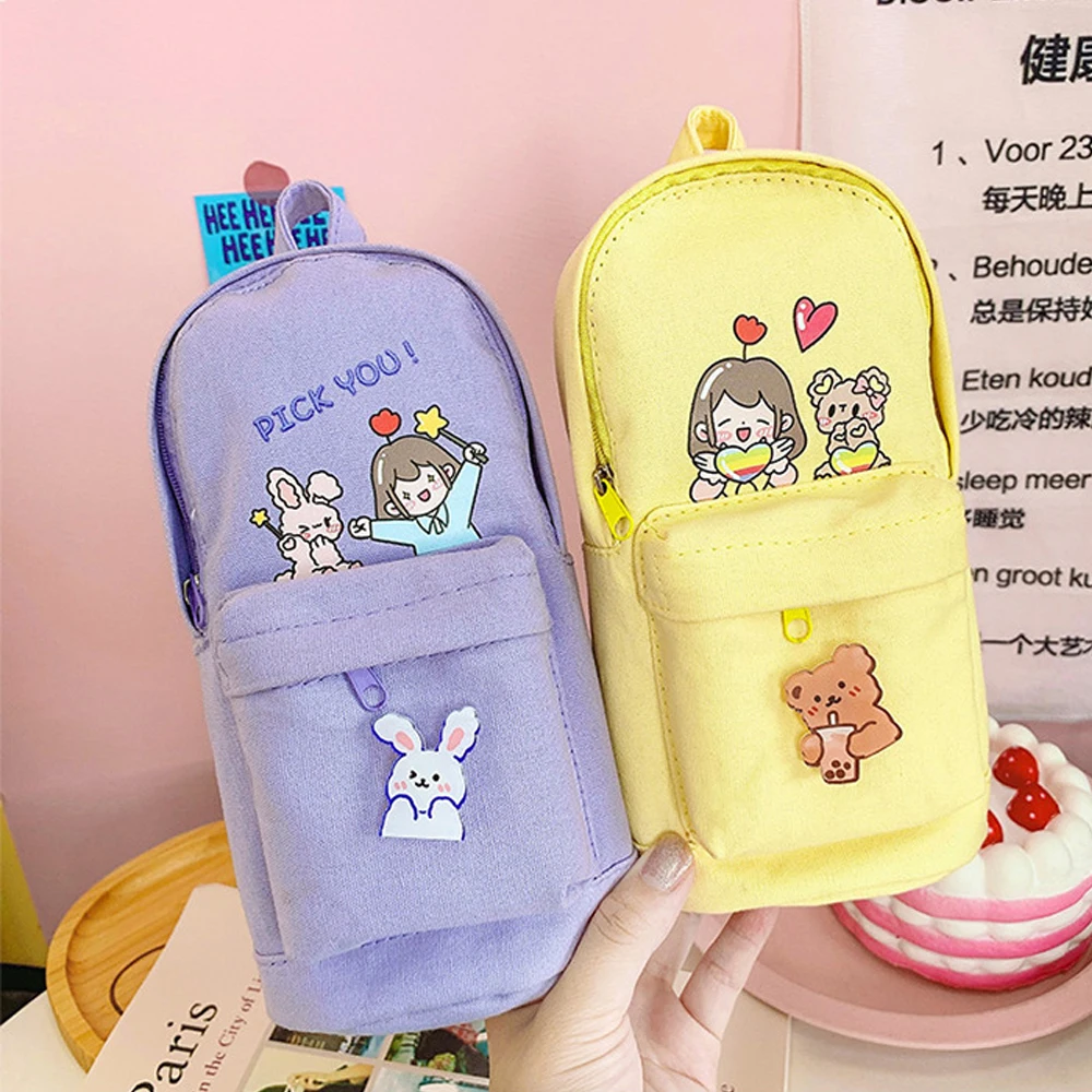 1 шт., милый холщовый чехол для карандашей с мультяшным рисунком, вместительные канцелярские принадлежности, сумки для ручек, коробка для хранения карандашей, косметика