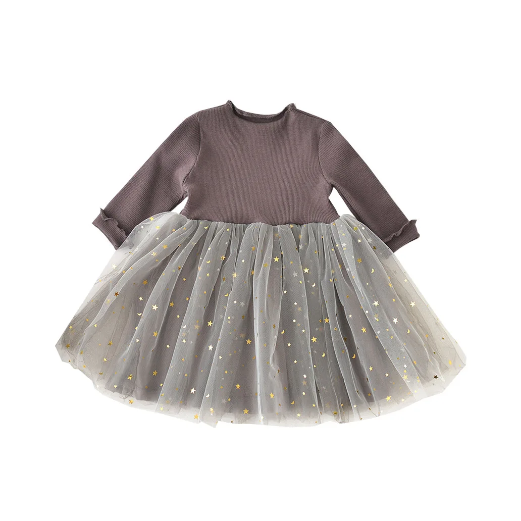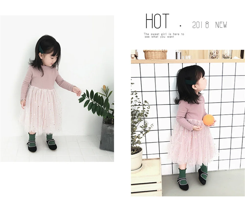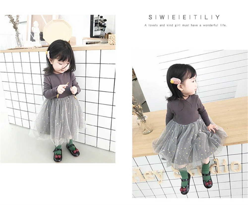 Платье с длинным рукавом длиной до колен, кружевная повседневная одежда принцессы для малышей, сетчатая газовая пушистая юбка, осенний стиль, подходит для G