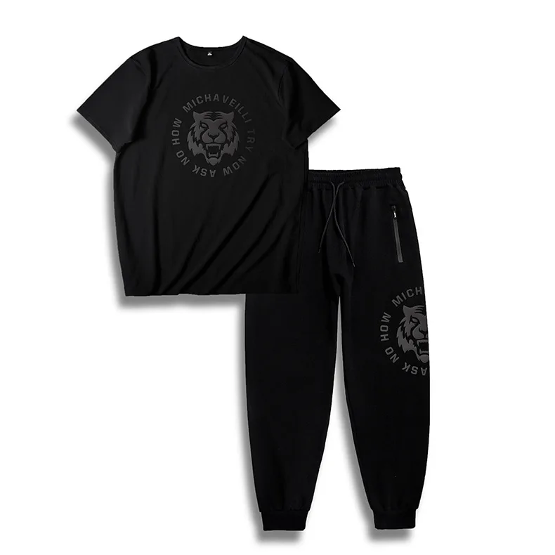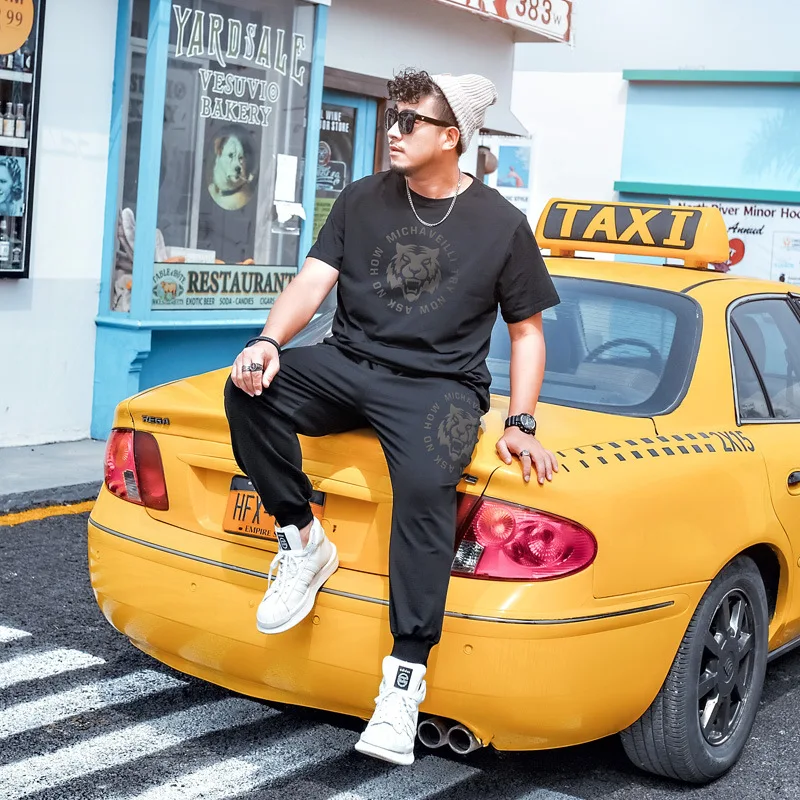 Мужской комплект из футболки и брюк, свободная футболка с коротким рукавом и принтом тигра, с надписью, в уличном стиле, комплект из двух предметов, 72209