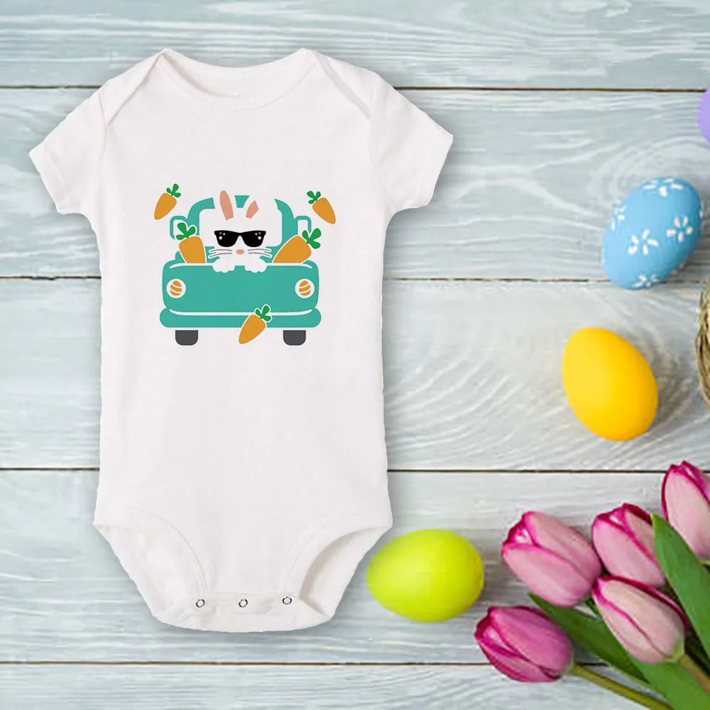 Мой первый Пасхальный персональный Детский комбинезон для новорожденных с мультяшным Кроликом, Забавный комбинезон с коротким рукавом для мальчиков и девочек, подарки на праздник