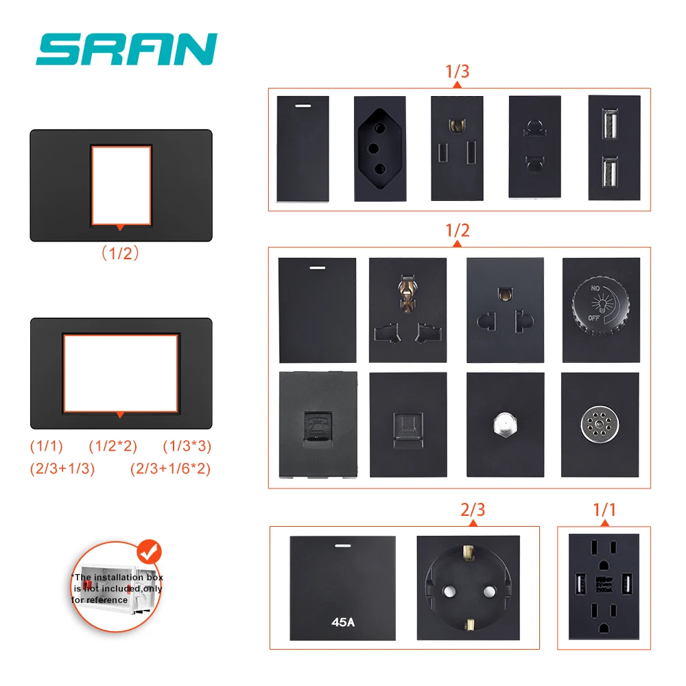 Черная розетка переключателя SRAN K6, 118 мм * 72 мм, стандарт браз...