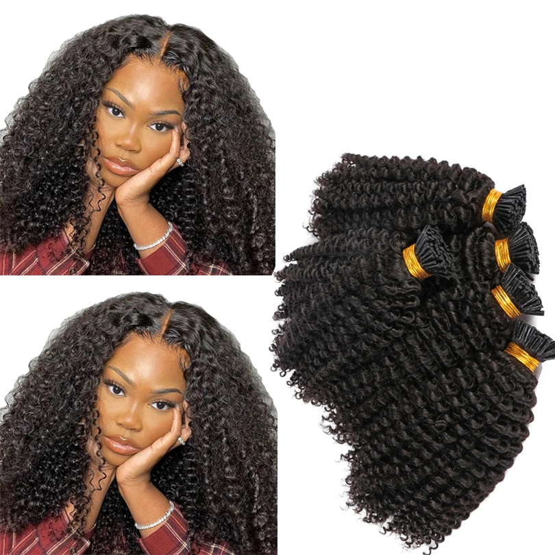 4B 4C I Tip афро кудрявые человеческие волосы для наращивания 100 прядей I Nail Tip в наращивании волос 1 глокон натуральный цвет Малазийские Волосы