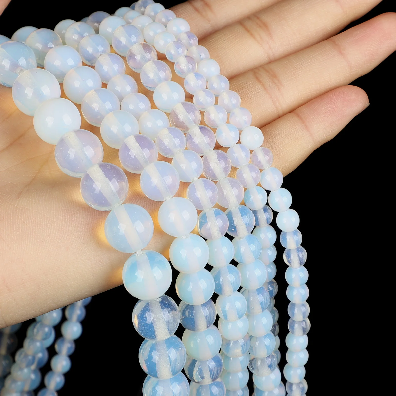 Бусины из натурального камня, гладкие опаловые круглые бусины-разде...
