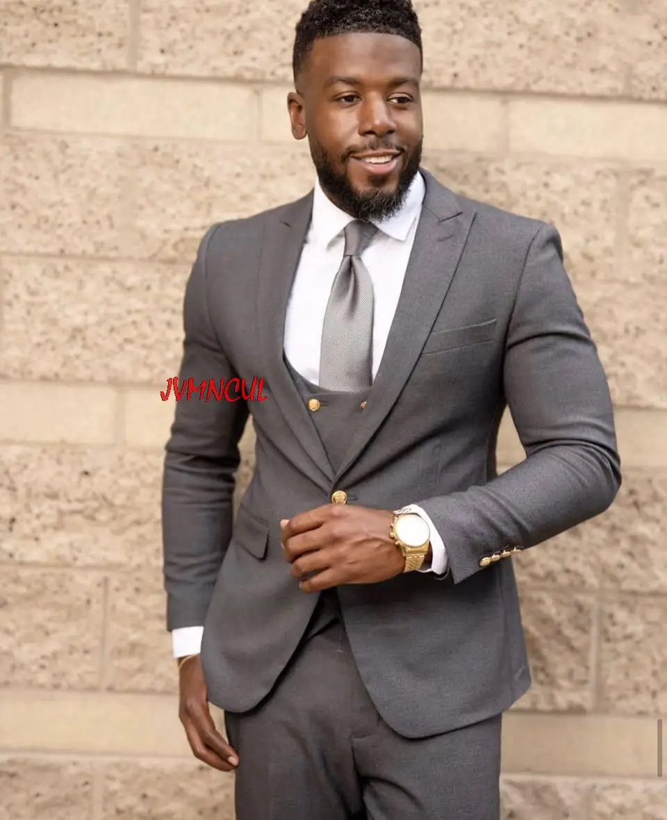 Мужские костюмы с лацканами в виде пика, на 1 пуговице, смокинги для жениха на заказ, Terno Masculino, облегающий блейзер для выпускного вечера, 3 шт., пиджак + брюки + жилет