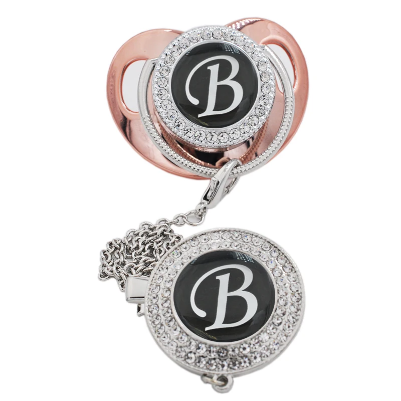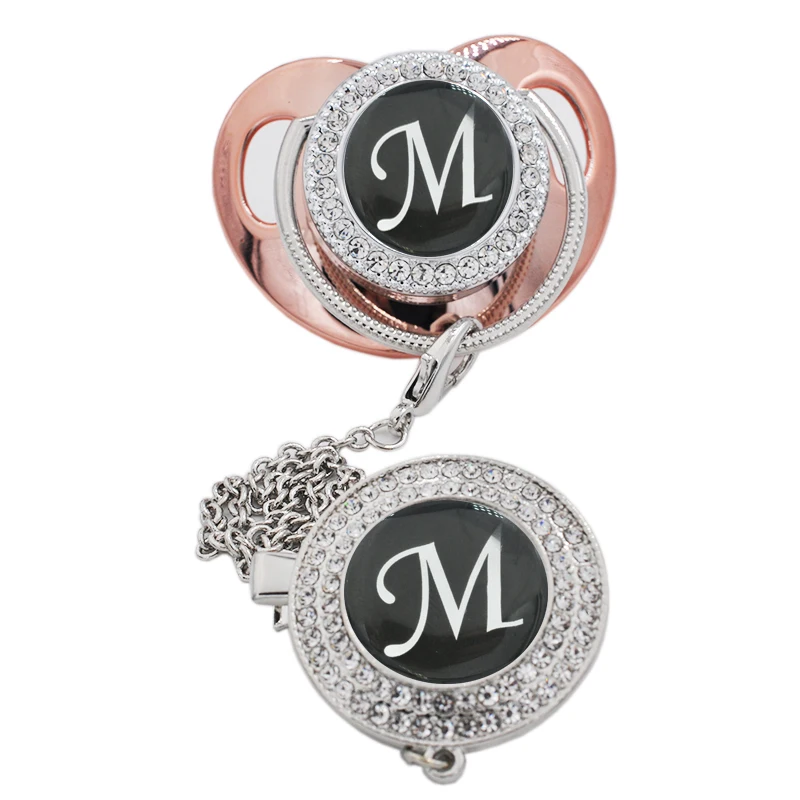 Золотая соска 26 инициальных букв СВЕРКАЮЩИЕ СЕРЕБРЯНЫЕ силиконовые...