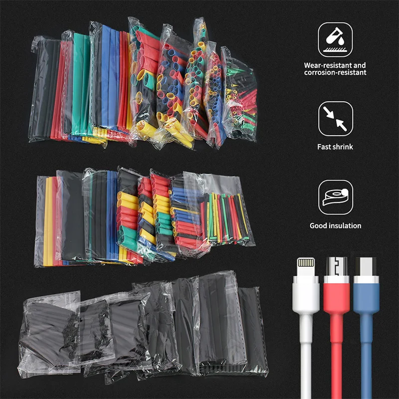 Особенности:Набор термоусадочных трубок, легко сказать и использовать.Различные цвета помогают различать разные размеры.Удовлетворить различные потребности: подключение к проводу, защита от припоя, концы проводов и так далее.Отличная защита окружающей среды, изоляция, мягкая, стабильная производительность, низкая термоусадочная температура, термоусадочная и т. д.Водонепроницаемое уплотнение, экологически чистое.Описание:Упаковано в компактную, повторно закрытую и разделенную пластиковую коробку для удобного хранения и вылета.Быстрое сжатие и простота в эксплуатации, просто нужно несколько секунд, чтобы завершить shink работу.Обеспечивает защиту окружающей среды и устойчивость к истиранию для вашей электрической работы.Характеристики:Материал: ПолиолефинРабочая температура: от-55 °C до + 125 °CМинимальная температура усадки: + 70 °CПолная Температура усадки: + 110 °C максимумКоэффициент усадки: 2:1 (будет максимально сокращаться до 1/2 его поставляемого диаметра)Особенности:1. Сильная усадка, может быть лучше для защиты проводов.2. Простой в использовании, не нужен какой-либо сложный инструмент.3. Сертификация CE.4. Способ упаковки является необязательным, прост в хранении.