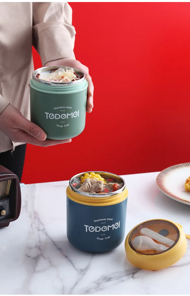 Миниатюрный термоконтейнер для ланча с ложкой из нержавеющей стали