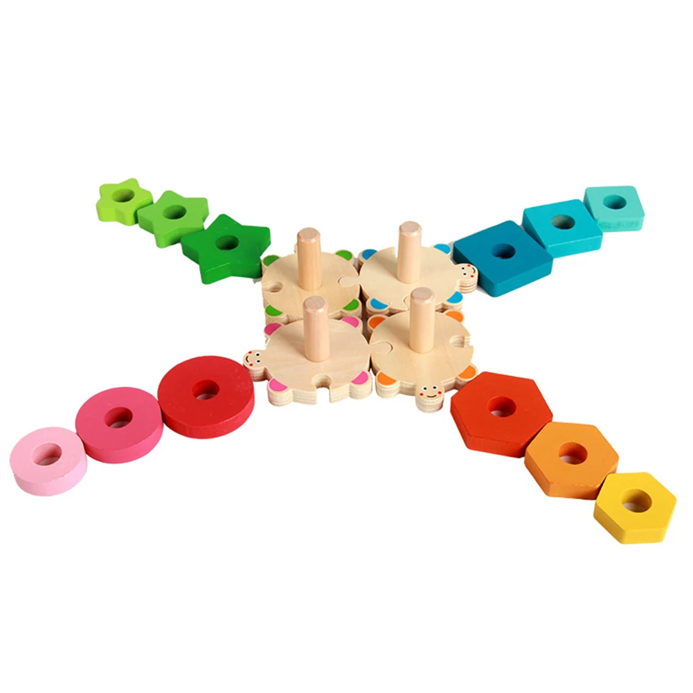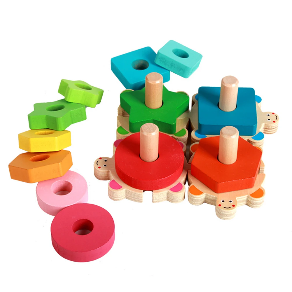 Цветные красочные деревянные игрушки для укладки безвкусная геометрическая форма сортировщик головоломка распознавание цвета раннее развитие моторики обучающие игрушки для детей ясельного возраста