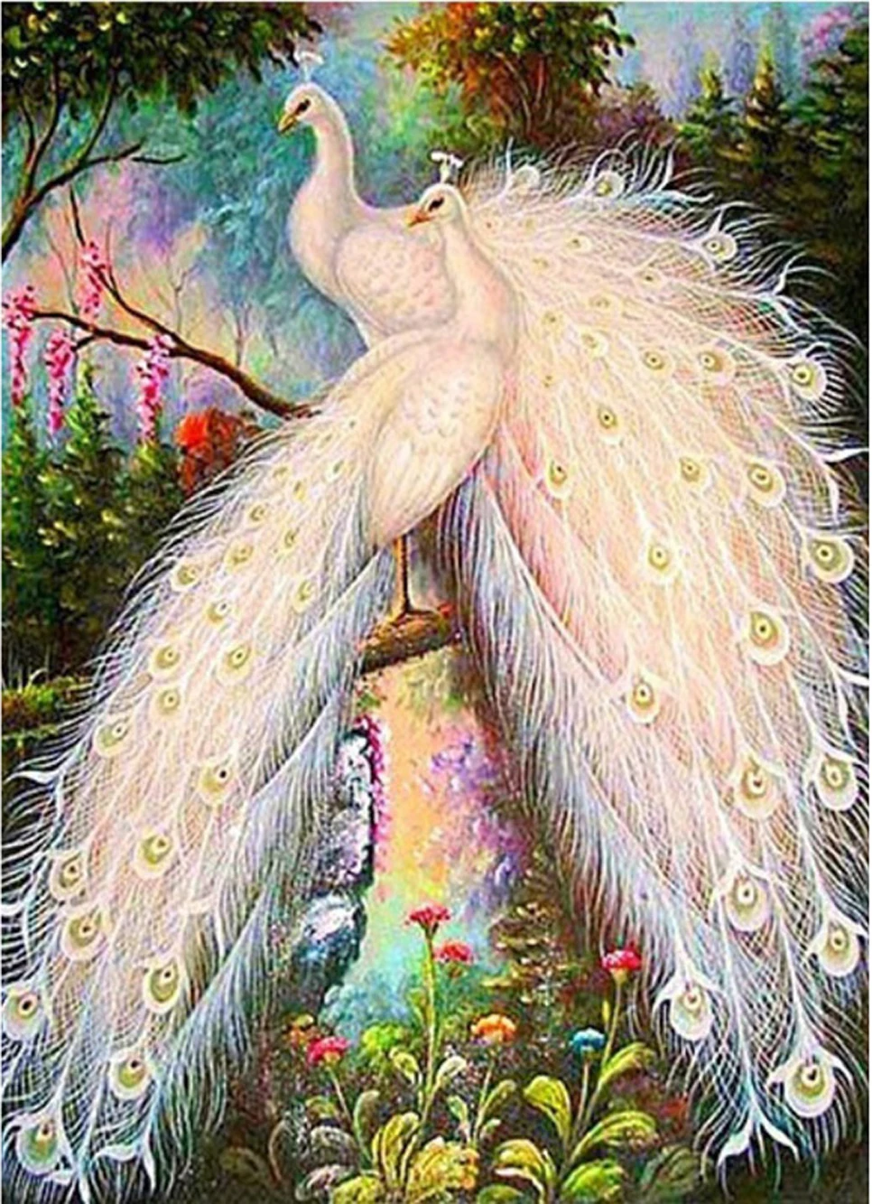 5D алмазная живопись мультфильм белый павлин круглая Алмазная мозаи...