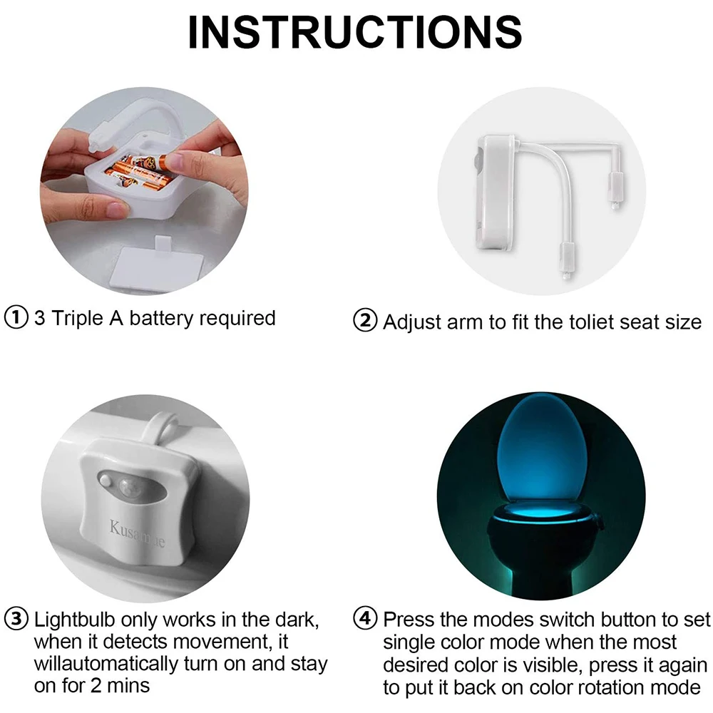 Светильник для туалета с датчиком движения, 8 цветов, светодиодный ...