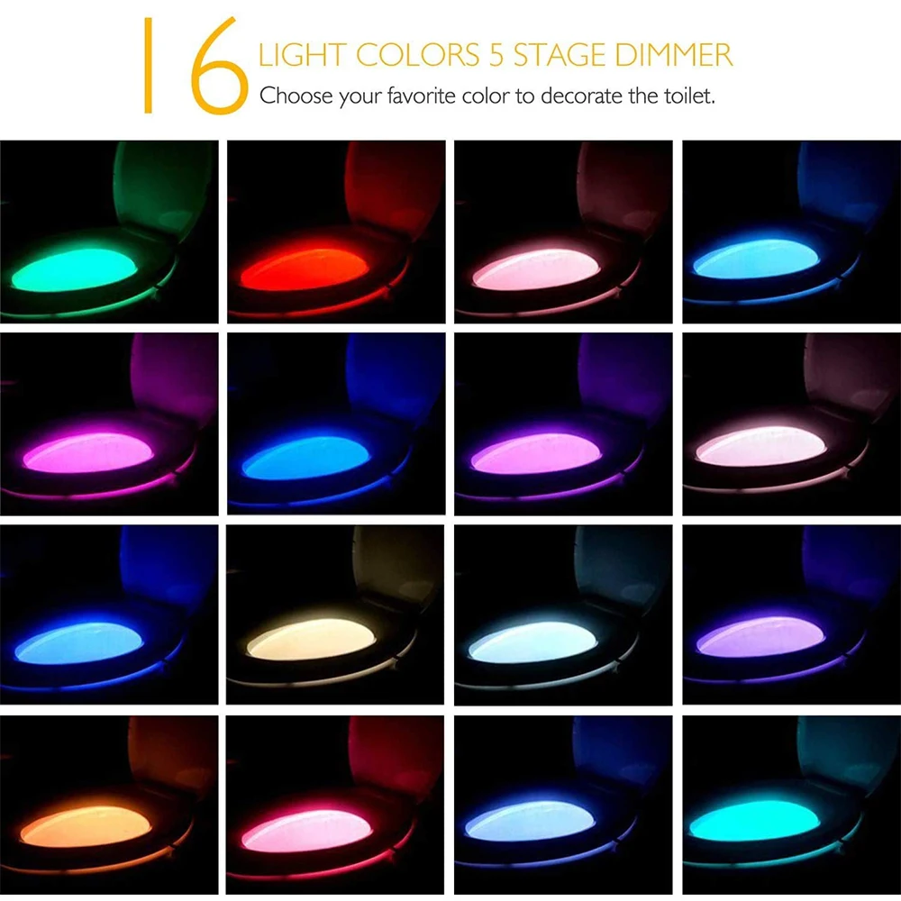 Ночник для сиденья унитаза с пассивным инфракрасным датчиком движения, водонепроницаемый светильник ильник с подсветкой для туалета, светодиодный16 цветов