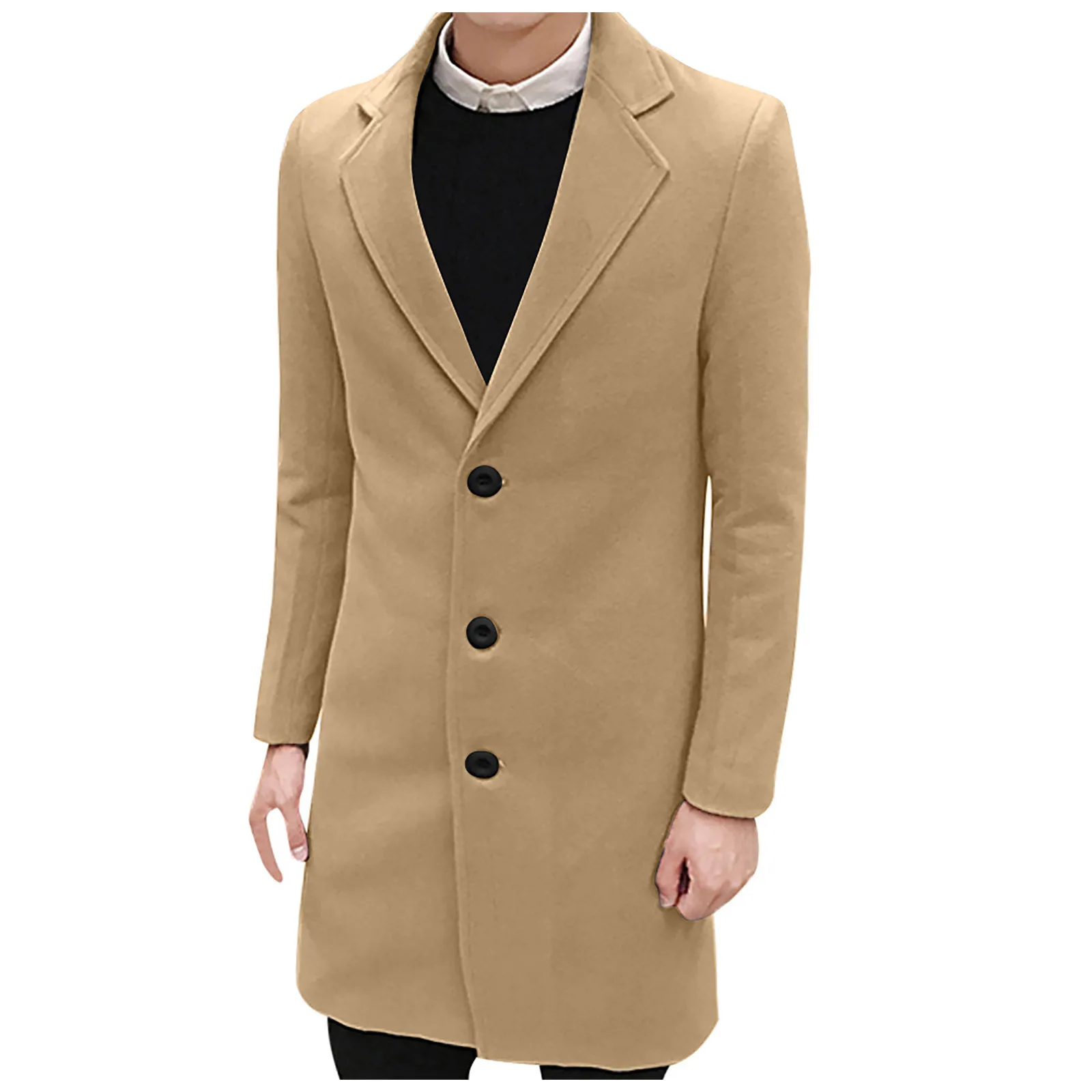 Мужское однобортное пальто, Длинная шерстяная куртка, официальная в...