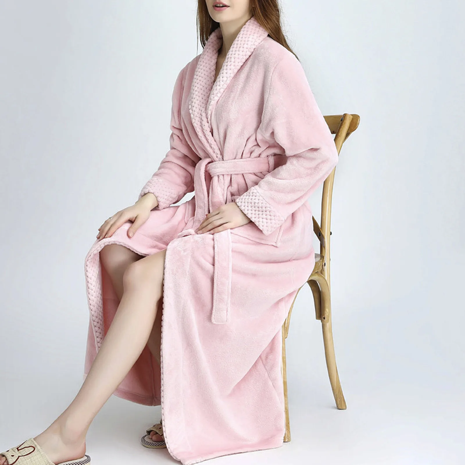 Банный халат женский, фланелевый, однотонный, с длинным рукавом, зи...
