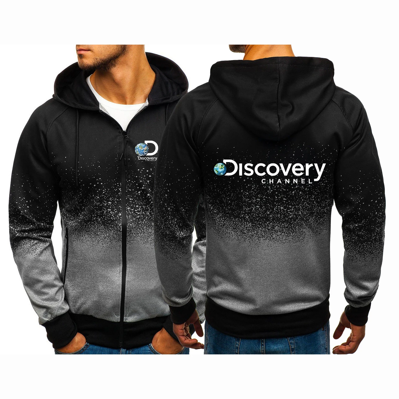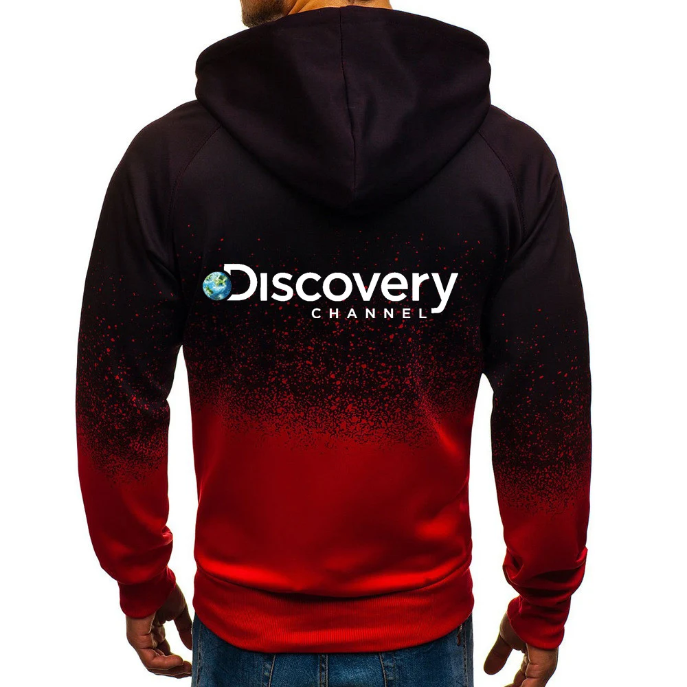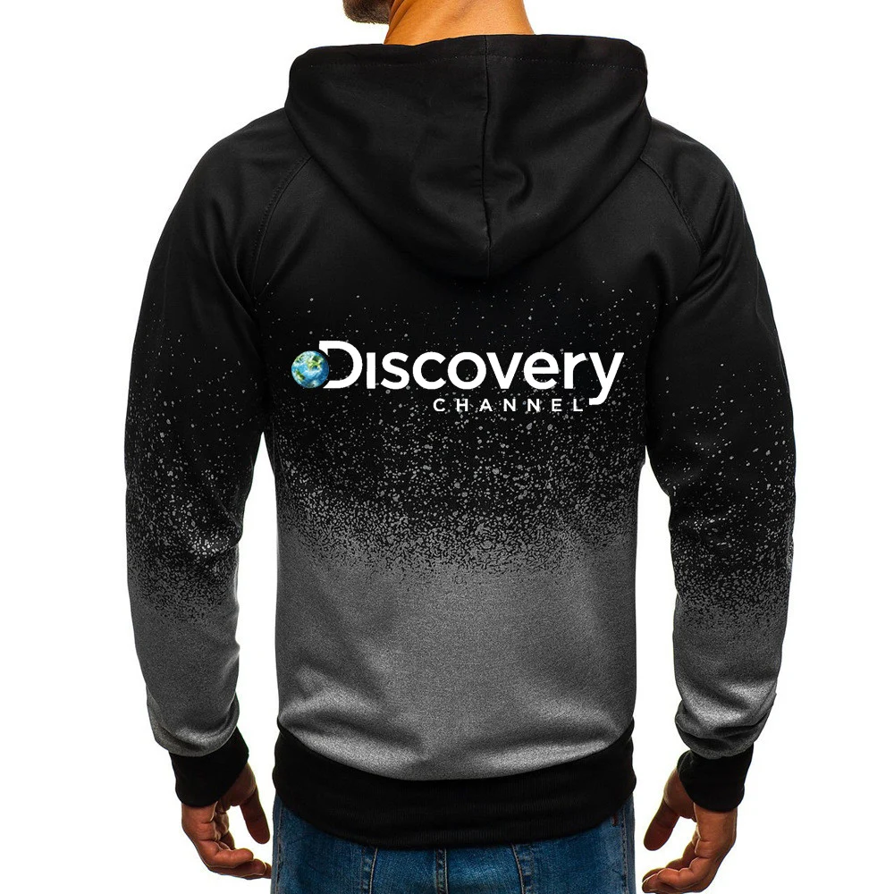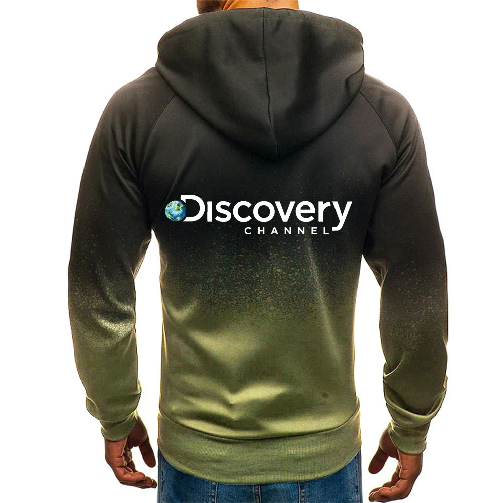 Куртка мужская с капюшоном, повседневная флисовая толстовка на молнии, с принтом логотипа на канале хип-хоп, с градиентным переходом цветов, в стиле Харадзюку