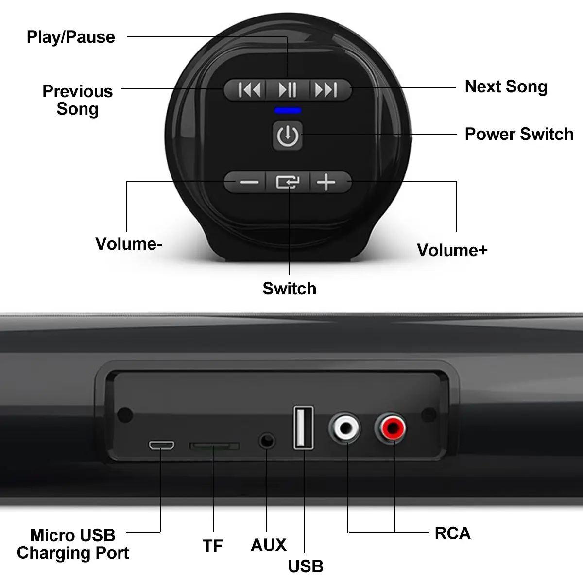 Портативная Беспроводная колонка, 20 Вт, Bluetooth колонка, мощная 3D музыка, звуковая панель, домашний кинотеатр, Aux 3,5 мм TF для ТВ, ПК