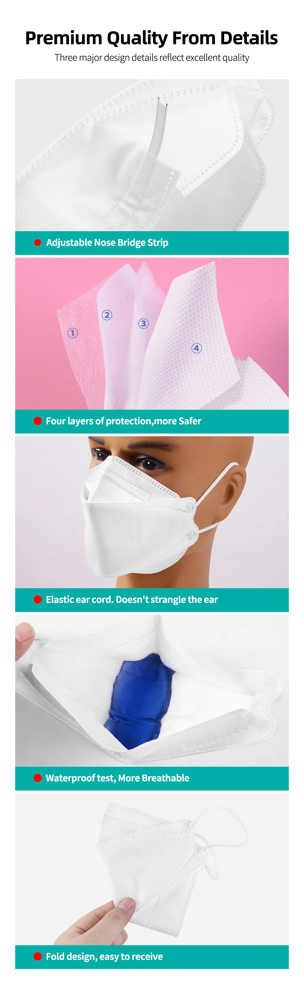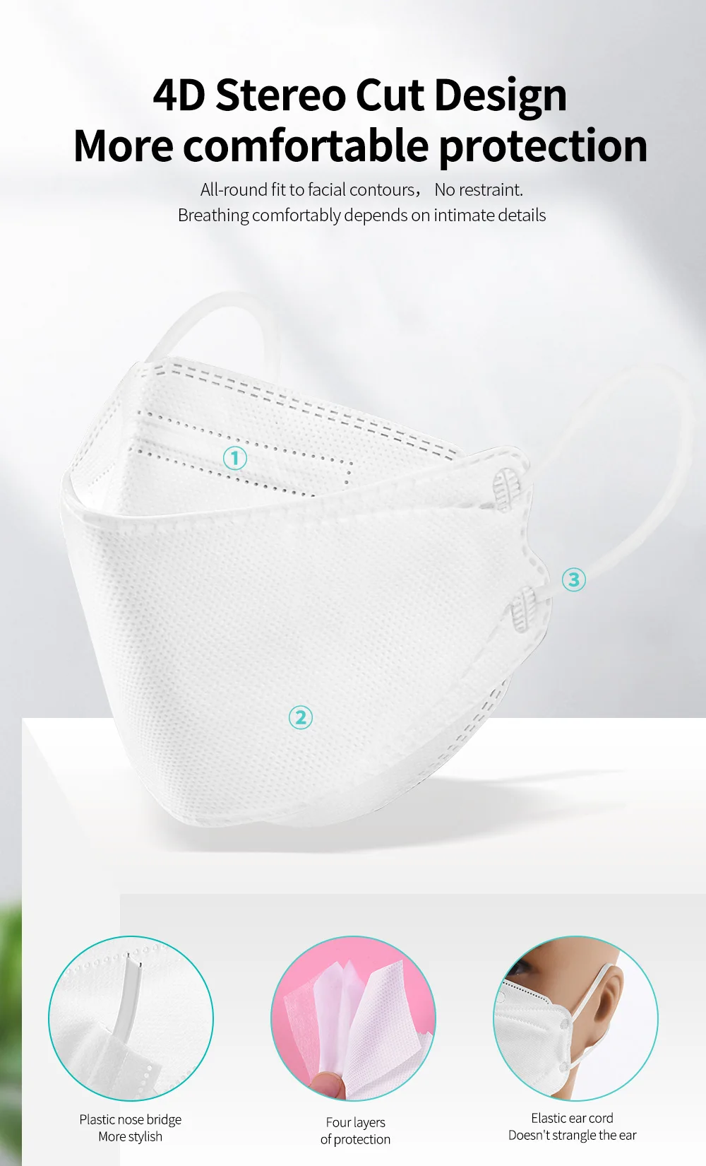 10-200 шт., многоразовые белые маски FPP2, 4 слоя