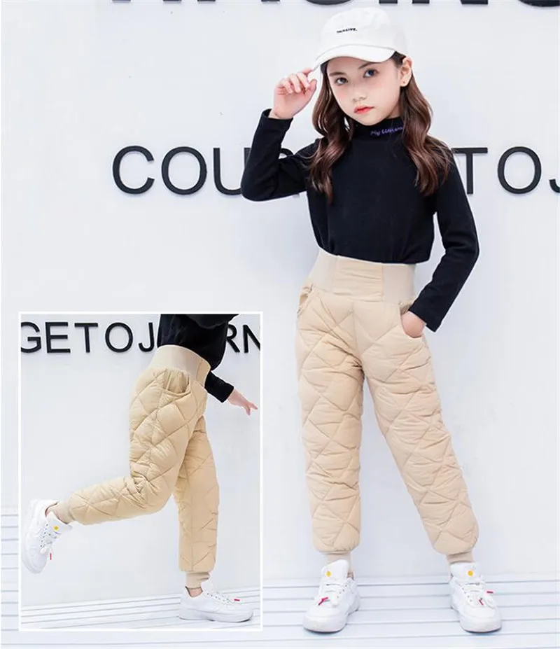Зимние Детские теплые пуховые хлопковые брюки, детские высококачественные брюки, подростковые пуховые брюки для мальчиков и девочек, детские лыжные пуховые брюки