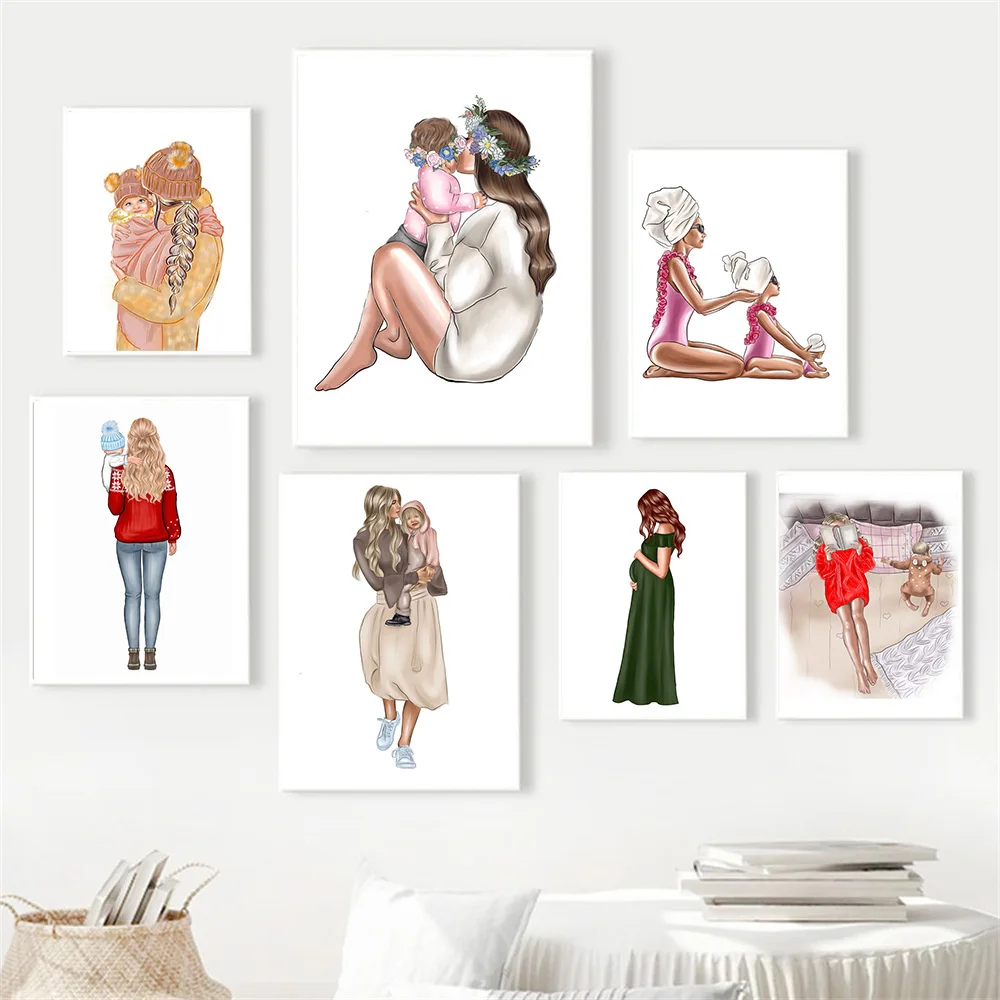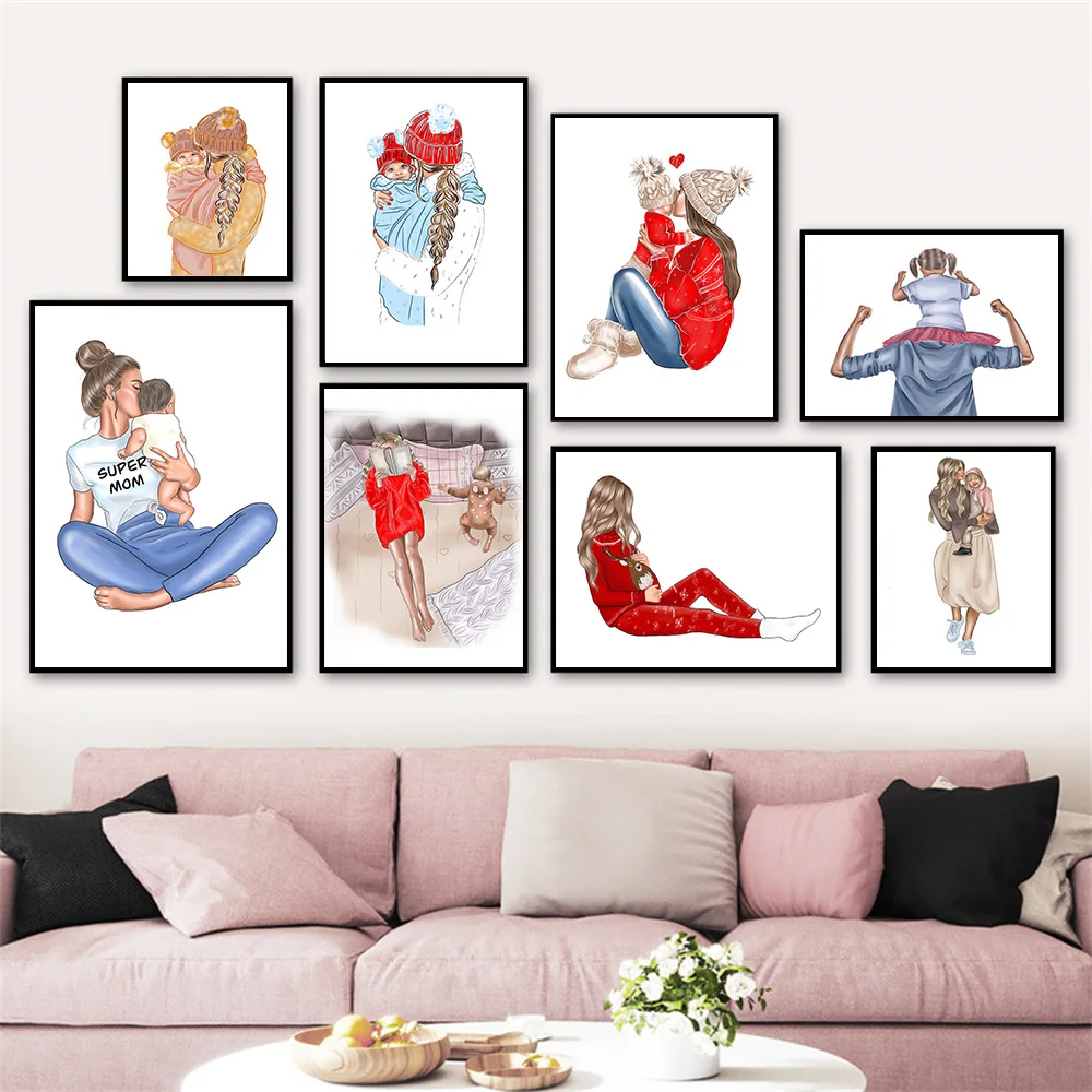 Постер для повседневной жизни для матери и ребенка, Теплая семейная Картина на холсте с надписью Super Mom, Love, дочери, сына, поцелуй, скандинавский домашний декор