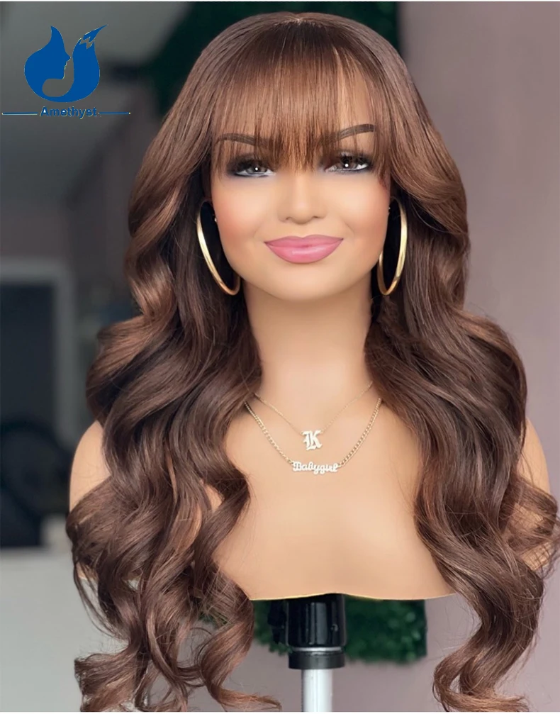 Аметистовый медовый блонд, парики с челкой на передней части, 13X4, свободные волнистые кружевные передние человеческие волосы, парик, коричневый, предварительно выщипанный Remy